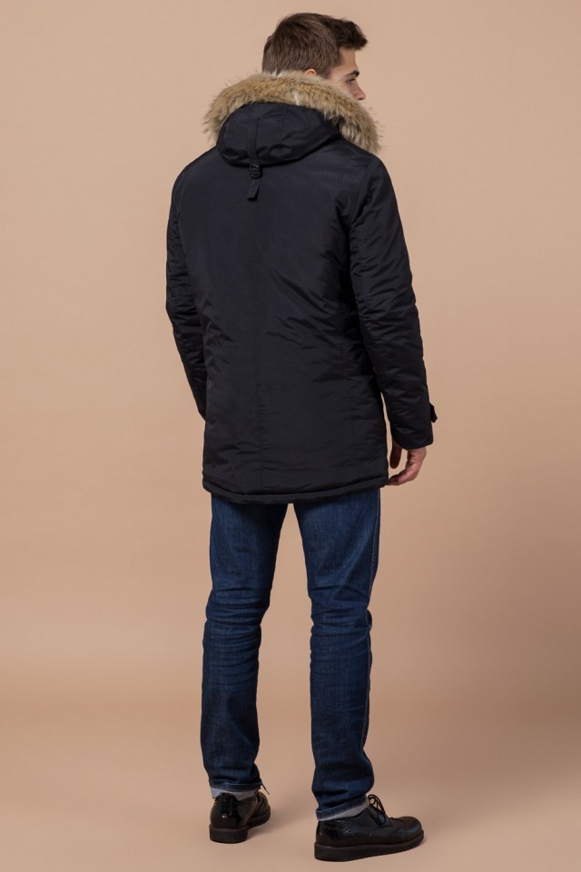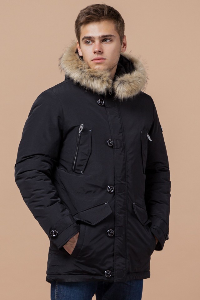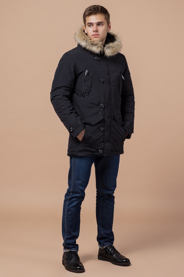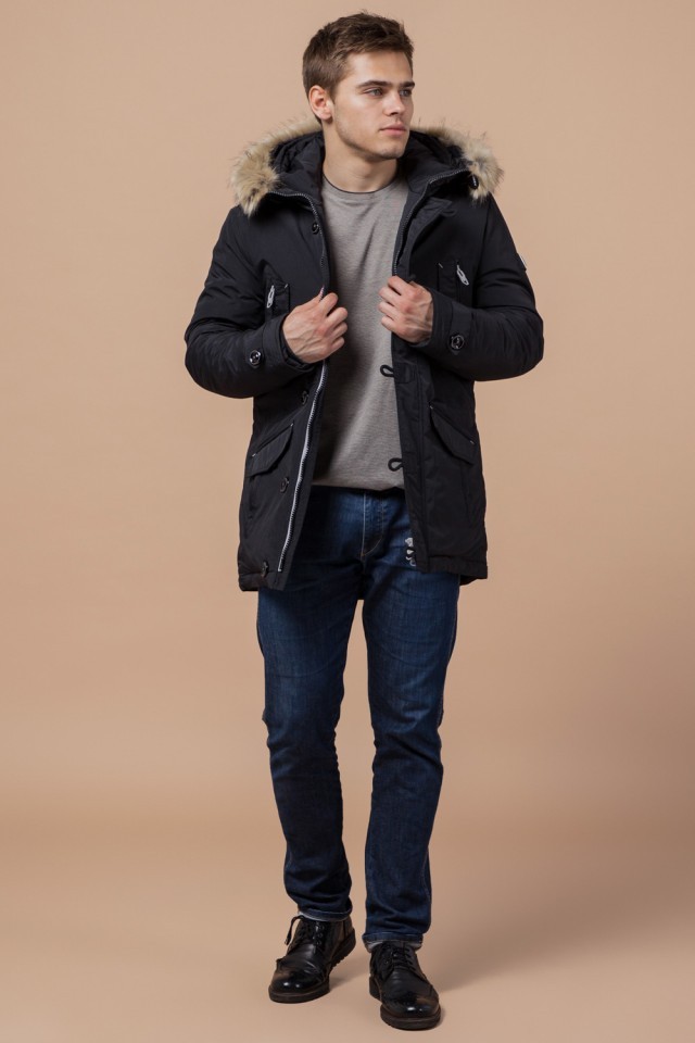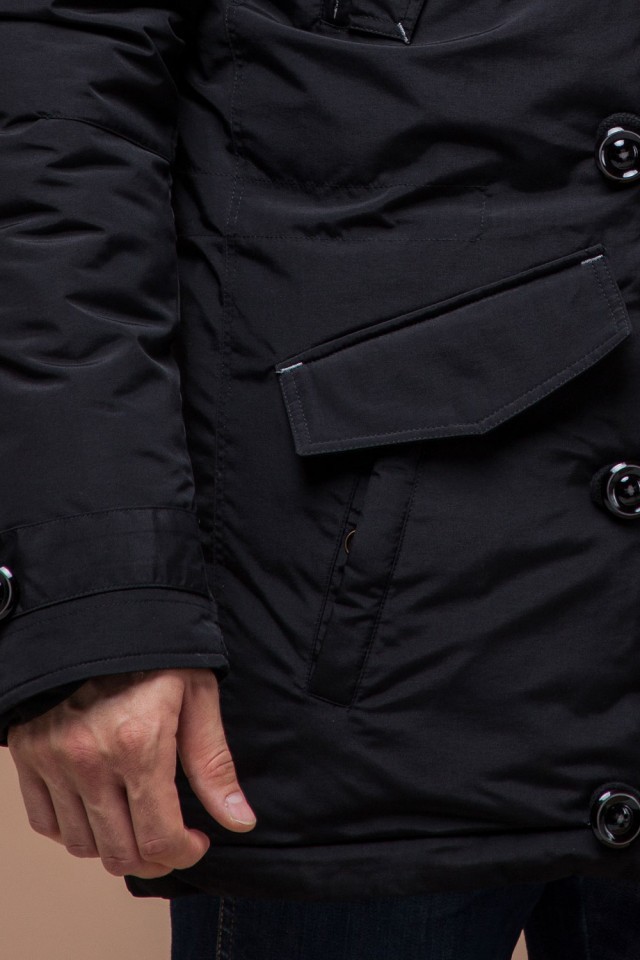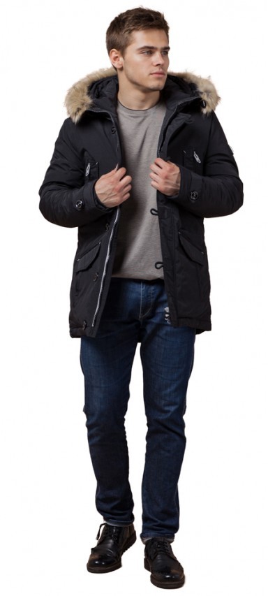Зимняя мужская парка стандартной длины цвет черный-серый модель 38230