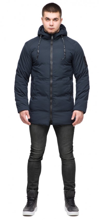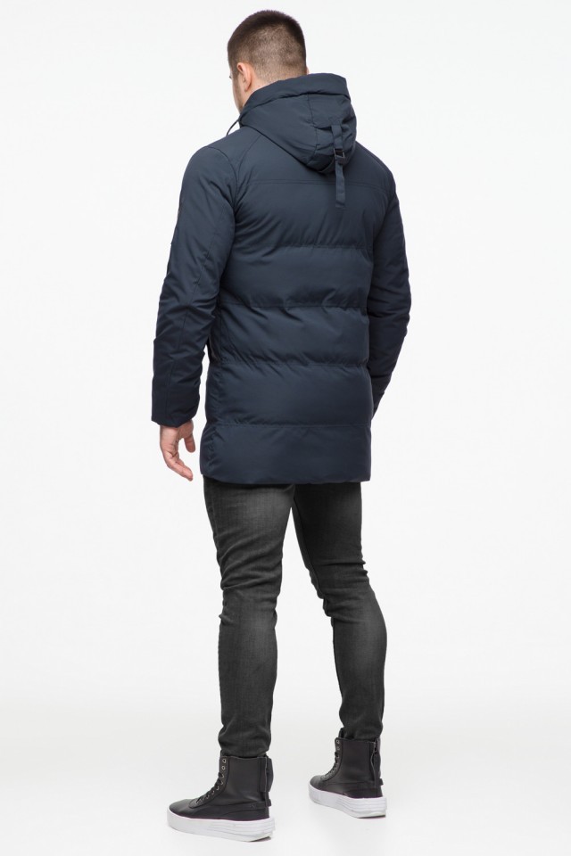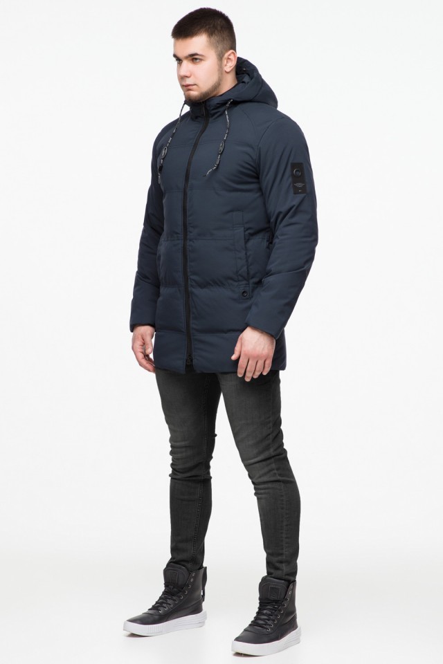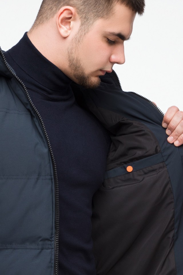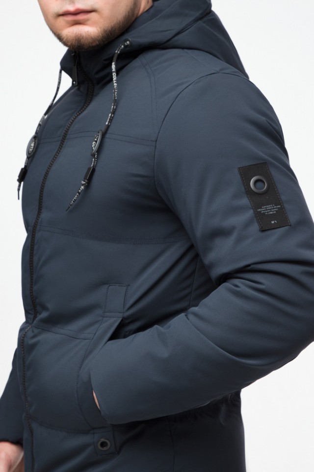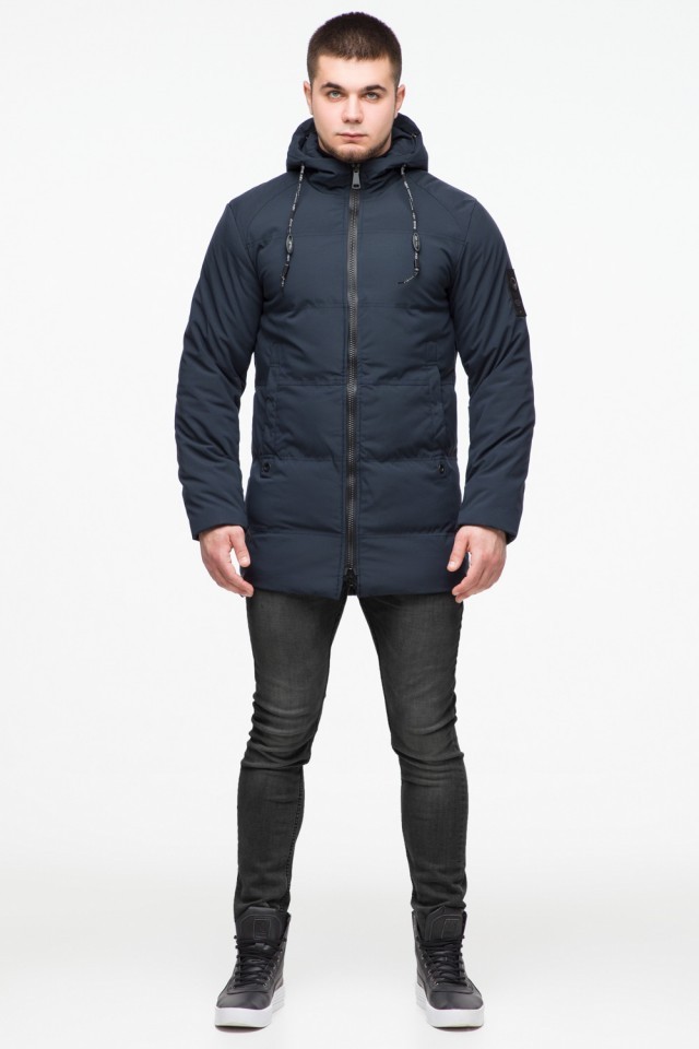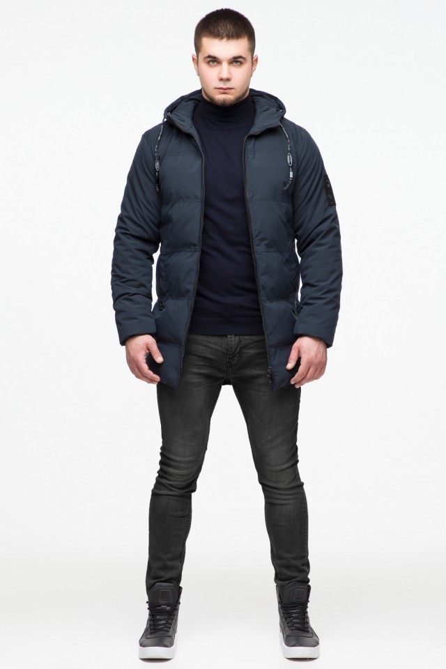 Зимняя мужская темно-синяя куртка молодежная на змейке модель 25400