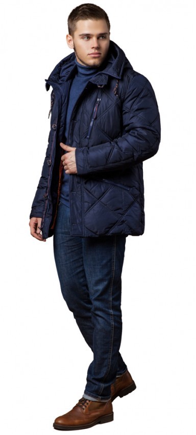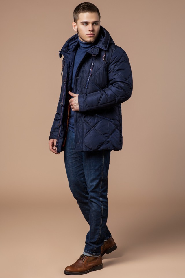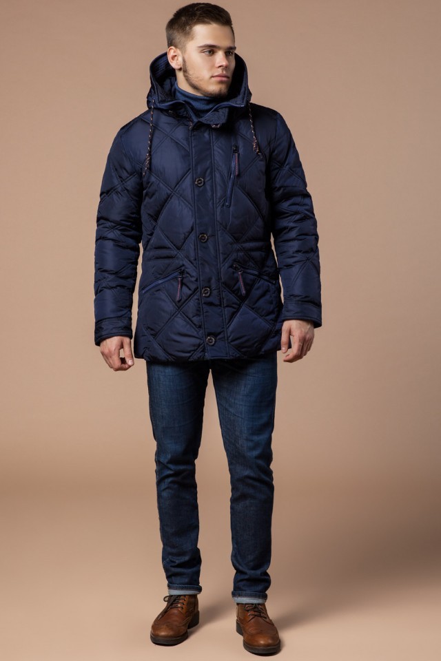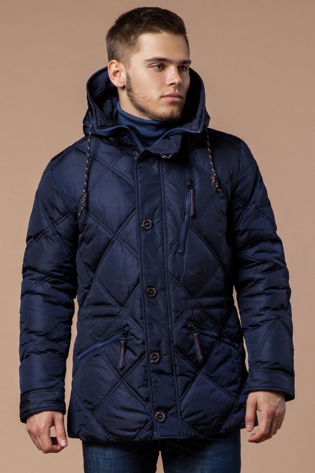 Зимняя темно-синяя куртка с пуговицами мужская модель 12481